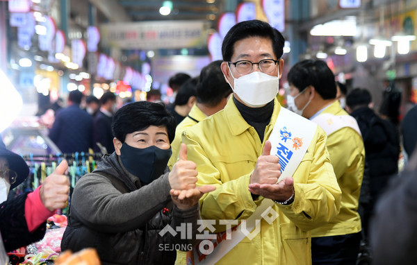 양승조 충남도지사와 황명선 논산시장이 설 명절을 맞아 코로나19방역상황 및 물가 점검과 함께 전통시장 활성화를 위한 소비 진작에 나섰다.