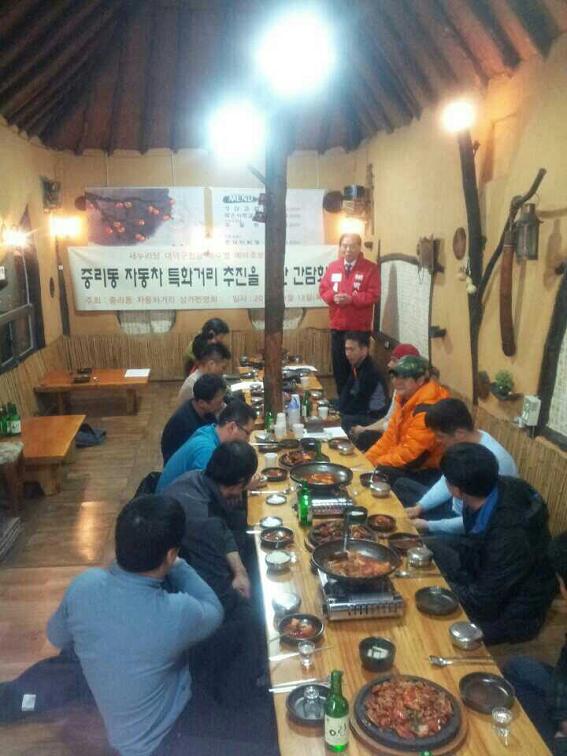 새누리당 대덕구청장 박수범 예비후보 3월 13일 중리동 자동차 특화거리 추진을 위한 간담회에 초청되어 대덕구 지역경제 활성화 일환으로 다양한 추진사업에 대한 의견을 나누었다.