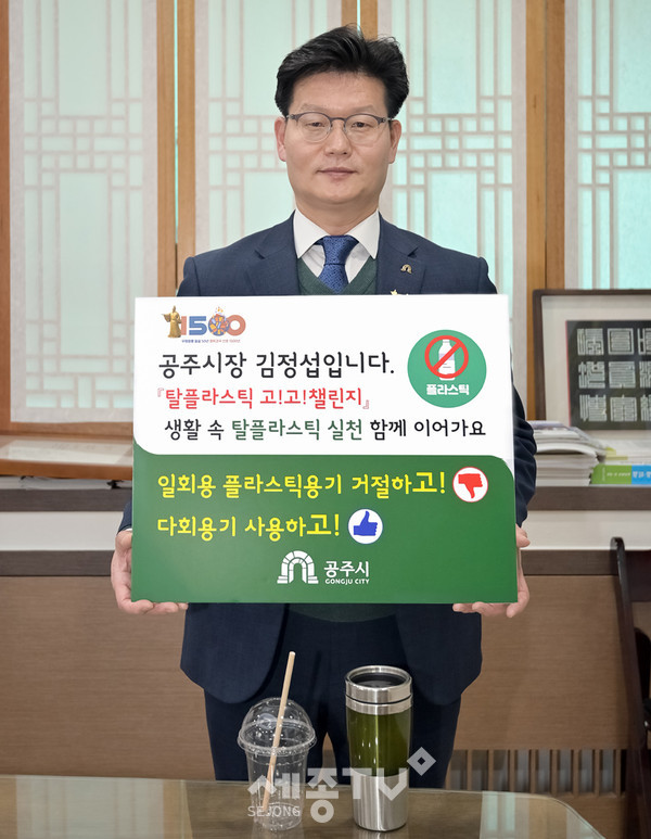 김정섭 공주시장이 지난 16일 플라스틱 사용을 줄여 환경을 개선하자는 취지로 진행 중인 ‘탈플라스틱 고고챌린지’에 동참했다.