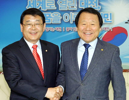 염 시장과 박 의원은 14일 오후 5시 10분쯤 시장 집무실에서 면담을 갖기로 했다. 과거 대전시장 선거에서 두 차례 맞붙은 경력이 있는 염 시장과 박 의원의 공식 만남은 지난해 9월에 이은 두 번째로 이 자리에서 둘 사이에 무슨 얘기가 오갈 지 지역 정가에 관심이 쏠리고 있다.