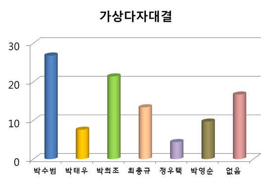 이번 가상 다자대결 여론조사의 후보 순서배열은 가,다,나 순 또는 정당 의석수에 따라 정했다. 정당지지도 조사에선 새누리당 62.6%, 통합신당 25.2%, 통합진보당 2.8%, 정의당 1.2%였고, 무응답은 8.2%였다.