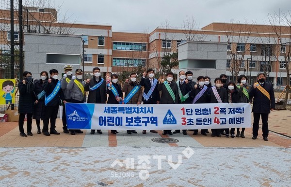 세종특별자치시(시장 이춘희)가 세종시교육청(교육감 최교진)과 함께 2일 나성초등학교 앞에서 ‘어린이 교통안전 캠페인’을 벌였다.