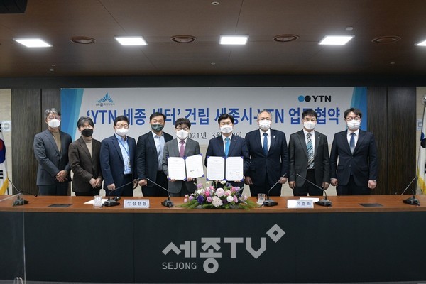 세종특별자치시(시장 이춘희)가 ㈜YTN(사장 정찬형)과 12일 오후 5시 30분 서울 상암동 YTN 뉴스퀘어 대회의실에서 ‘YTN 세종센터(가칭) 건립을 위한 양해각서(MOU)’를 체결했다.
