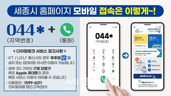 세종특별자치시(시장 이춘희)가 정보취약계층의 편리하고 빠른 시청 누리집 접속을 지원하기 위해 휴대폰 전화걸기 화면에서 시청 누리집을 직접 연결하는 ‘모바일 다이얼링크 서비스’를 제공한다.