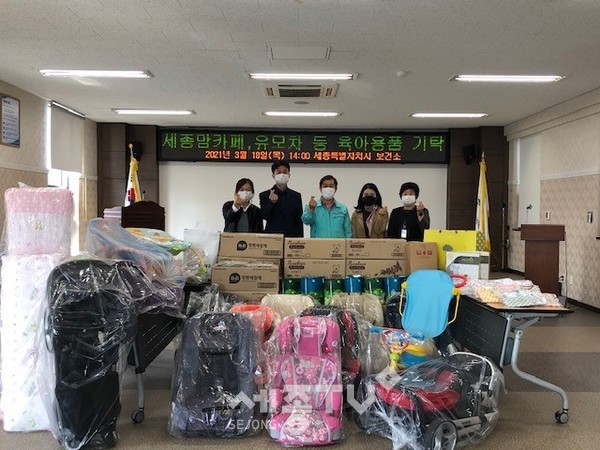 이날 세종맘카페 회원들이 기증한 물품은 각 가정에서 사용하던 유모차와 카시트·의류·장난감(세탁 살균처리 완료) 및 기저귀·물티슈 등 10여 종이다.