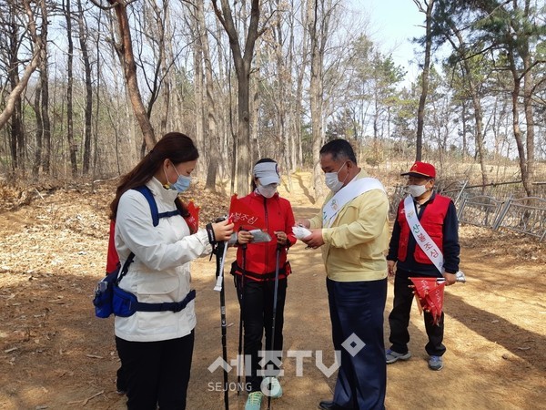 세종특별자치시 조치원읍(읍장 임재공)이 봄에 접어들며 산불발생 위험이 높아짐에 따라 지난 18일 오봉산 일원에서 봄철 등산객 등 입산자를 대상으로 산불조심 캠페인을 진행했다.