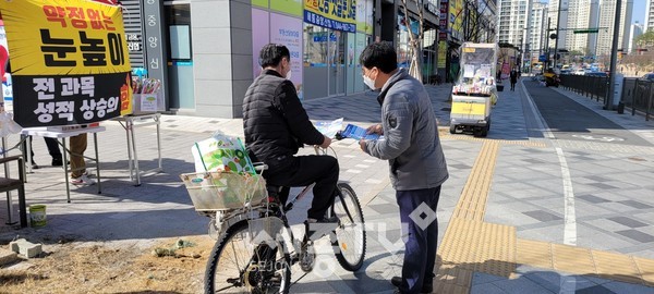 이날 다정동 관계자들은 개인형 이동수단의 수요가 급증하면서 자전거·전동킥보드를 이용하는 시민에게 안전수칙과 법령사항 등을 안내하고 홍보물을 전달하며 홍보활동을 펼쳤다.