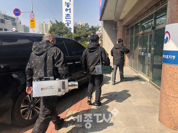코로나19 확산방지를 위해 23일 오전부터 태조산과 충남동부보훈지청에서 코로나 확산방지를 위해 방역활동을 추진했다.