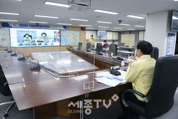 세종특별자치시(이춘희 시장)가 30일 시청 충무상황실에서 유관기관과 영상회의로 ‘2021년 지방 통합방위회의’를 열고 비상사태에 철저히 대비할 것을 다짐했다.