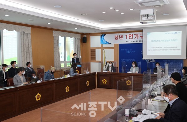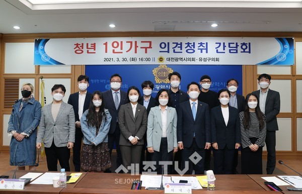 대전시의회가 주최하고 복지환경위원회와 유성구의회 행정자치위원회가 주관한 ‘청년 1인가구 의견청취 간담회’가 30일 시의회 대회의실에서 개최됐다.