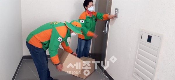 세종특별자치시 자율방재단(단장 박영철)이 최근 코로나19 확산에 따라 자가격리자에게 구호물품을 전달하는 자원봉사 활동에 팔을 걷고 나섰다.