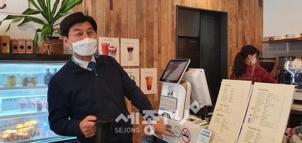 이날 이춘희 세종시장은 시청 근처 ‘용기낸가게’로 등록된 커피숍을 찾아 준비해 온 개인컵을 사용하고 시민들의 동참을 당부했다.
