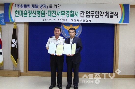 또한 대전서부경찰서는 한마음 정신병원과 업무협약(MOU)체결로상습 주취폭력자의 신속한 치료를 통한 원활한 사회생활 안내도 실시 할 예정이다.