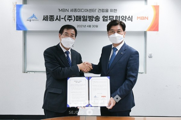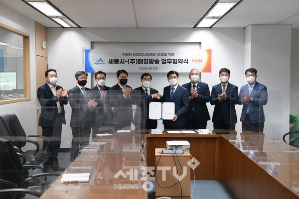 세종특별자치시(시장 이춘희)가 ㈜매일방송(MBN, 대표이사 류호길)과 ‘MBN 세종미디어센터(가칭)’ 건립을 위한 업무협약(MOU)을 30일 오후 5시 서울 충무로 MBN 사옥에서 체결했다.