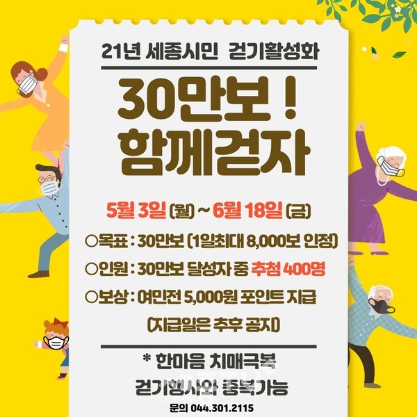 - 세종시보건소 5~6월 걷기 챌린지 운영…400명 추첨 여민전 지급 -