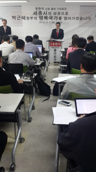유한식 예비후보는 출마기자회견에 앞서 오후 1시 세종시선거관리위원회에 예비후보 등록을 마쳤다