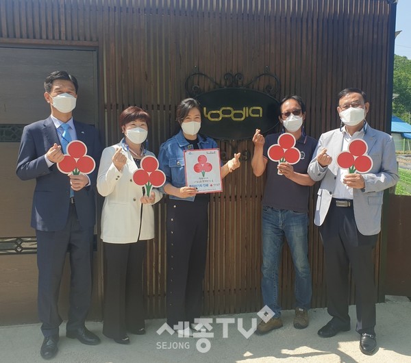 세종특별자치시 금남면지역사회보장협의체(공동위원장 신상철·엄미숙· 진승기)가 13일 신촌리의 ‘커피 디(COFFEE D, 사장 이종석)’와 루디아 기획.인쇄(사장 엄진남)’을 찾아 ‘착한가게 현판식’을 가졌다.