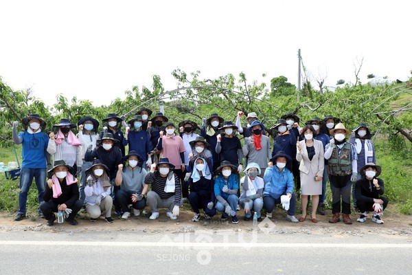 세종특별자치시의회(의장 이태환)는 14일 연동면 노송리에 위치한 복숭아 농가에서 농촌 봉사활동을 실시했다.