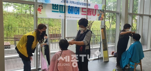 세종특별자치시 고운동 지역사회보장협의체(공동위원장 김민예·안정순)가 21일 고운동 남측 복합커뮤니티센터에서 ‘찾아가는 이‧미용실 쁘띠 헤어 드림U(유)’를 진행했다.