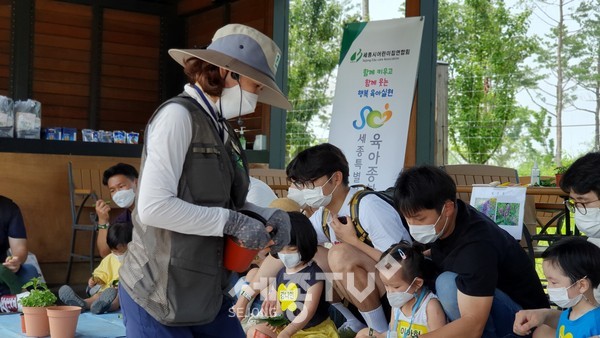 세종특별자치시육아종합지원센터(센터장 임이랑)는 영유아의 오감발달 및 창의력을 돕고 아ᄈᆞ와의 친밀한 관계 증진을 위해 세종시 자녀를 둔 아빠와 영유아를 대상으로 12일(토) 10시부터 국립세종수목원 생활정원에서‘아빠와 함께 가드닝체험 - 꼬마정원사’프로그램을 진행하였다.