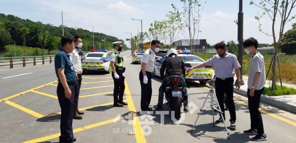 천안동남경찰서 청수파출소(소장 조태형)는, 지난 6월 12일 오후 1시부터 5시간 동안 관내 청당동 엘지로 구간에서 천안시청 기후대기과와 합동으로, 여름철 이륜차 소음으로 인한 주민불편이 증대됨에 따라 평온한 생활환경 조성을 위해 이륜차 배기소음에 대한 선제적 단속 활동을 실시했다.
