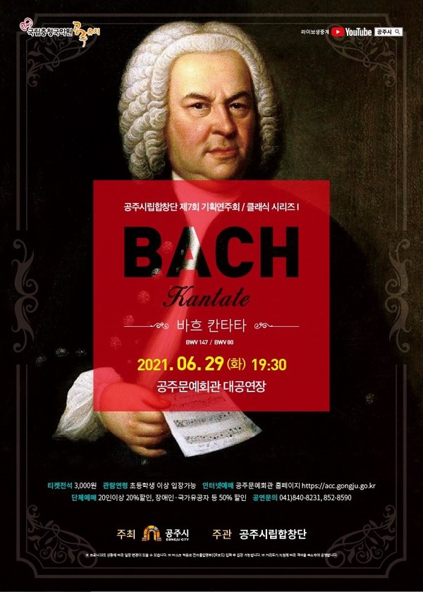 공주시(시장 김정섭)는 오는 29일 오후 7시 30분 공주문예회관 대공연장에서 공주시립합창단 제7회 기획연주회로 클래식 시리즈 1탄 ‘바흐 칸타타’를 개최한다.