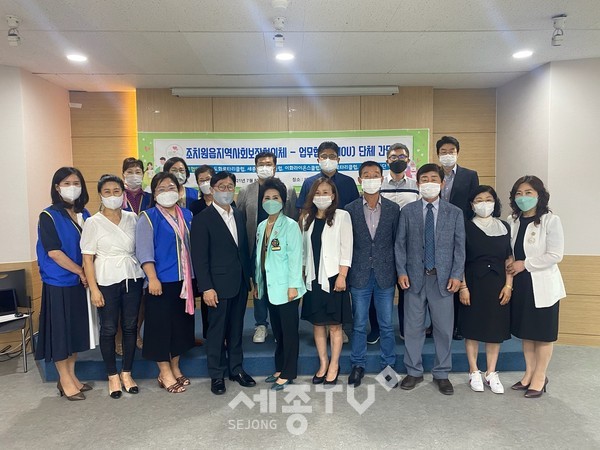 세종특별자치시 조치원읍 지역사회보장협의체(위원장 임재공·이재경)가 8일 업무협약을 맺은 단체와 올 상반기 활동성과 공유를 위해 간담회를 개최했다.