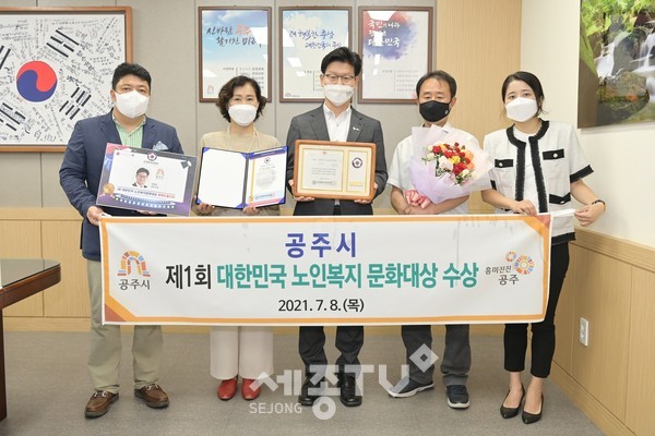 김정섭 공주시장이 지난 8일 서울 국기원에서 열린 제9회 대한민국 도전페스티벌에서 대한민국 노인복지문화대상을 수상하는 영예를 안았다.
