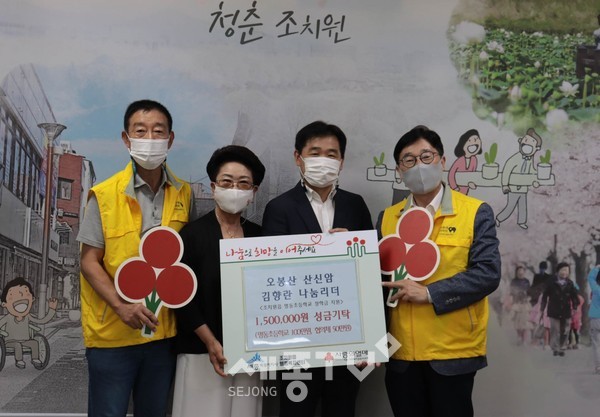 세종특별자치시 조치원읍(읍장 임재공)에 위치한 오봉산산신암(주지원각 김향란)이 지난 15일 장학금·이웃돕기 성금 150만 원을 세종사회복지공동모금회를 통해 조치원읍지역사회보장협의체에 전달했다.