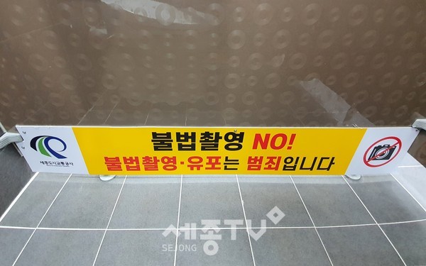 한편, 세종도시교통공사는 시민들이 안심하고 이용할 수 있는 시설환경 조성을 위해 세종시 대중교통시설 여성화장실에 불법카메라 간이점검카드를 제작 비치해 대중교통시설 이용객들에게 호평을 받은 바 있다.