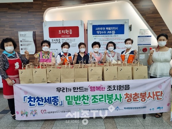 이들은 2017년부터 봉사에 동참해 관내 취약계층을 위해 꾸준히 밑반찬을 조리해주고 있으며, 조치원읍 지역사회보장협의체(위원장 임재공·이재경)의 민관협력 특화사업 ‘찬찬세종’의 주역이기도 하다.