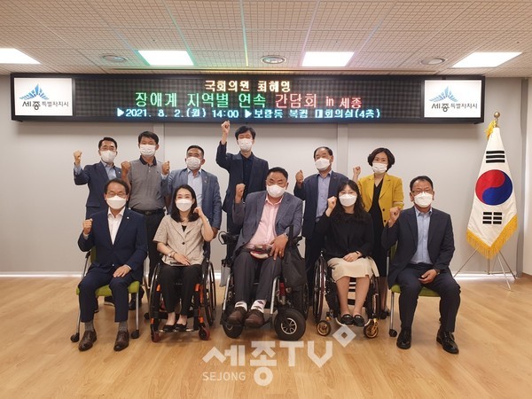 ㈔세종특별자치시장애인단체연합회(회장 길현명)가 국회 보건복지위원회 소속 최혜영 국회의원과 2일 보람동 복합커뮤니티센터에서 세종시 장애인복지 발전을 위한 현장 간담회를 진행했다.
