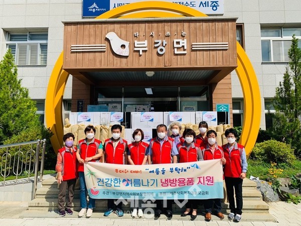 세종특별자치시 부강면 지역사회보장협의체(공동위원장 안진순·정종길)가 연일 계속되는 무더위를 대비해 5일 저소득층 노인, 장애인 가정 30가구에 냉방용품지원사업을 추진했다.