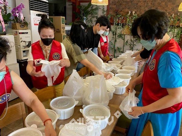 황채현 세종·충남 이화라이온스 회장은 “우리 이웃들이 코로나19로 외부 활동도 어려운 와중에 날씨까지 더워지며 더욱 힘든 시기를 겪고 있다”며 “준비한 보양식으로 원기회복 하셨으면 좋겠다”고 말했다.