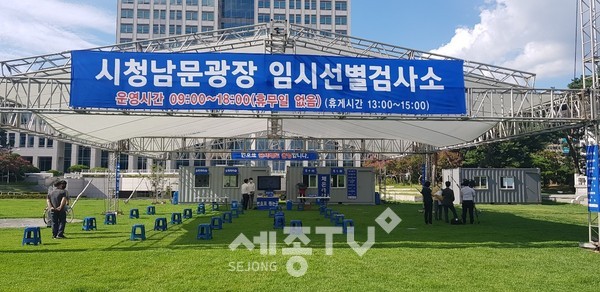 대전시(시장 허태정)가 코로나19 선제검사를 위해 시청 남문광장에 임시선별검사소를 추가 설치했다.