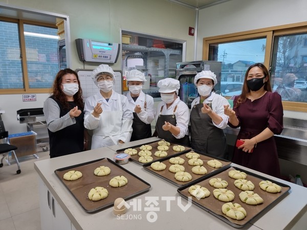 세종특별자치시 부강면 주민자치회(회장 소군호)와 부강면 도시재생뉴딜사업 주민공동체 ‘샤이맘’ 팀이 지난 29일 취약계층 아동 45명을 위해 손수 만든 부강빵 90개를 전달했다.