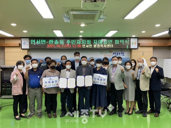 세종특별자치시 연서면 주민자치회(회장 오옥균)와 한솔동 주민자치회(회장 박순영)가 7일 연서면 행정복지센터에서 자매결연 협약을 체결했다.
