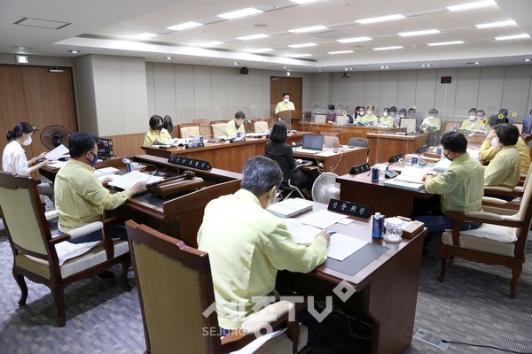 충남도의회 복지환경위원회(위원장 오인환)는 7일 제332회 충남도의회 임시회 제1차 본회의를 열고 충남도 여성가족정책관·저출산보건복지실·기후환경국 소관 2021년도 제2회 추가경정 예산안을 심사했다.