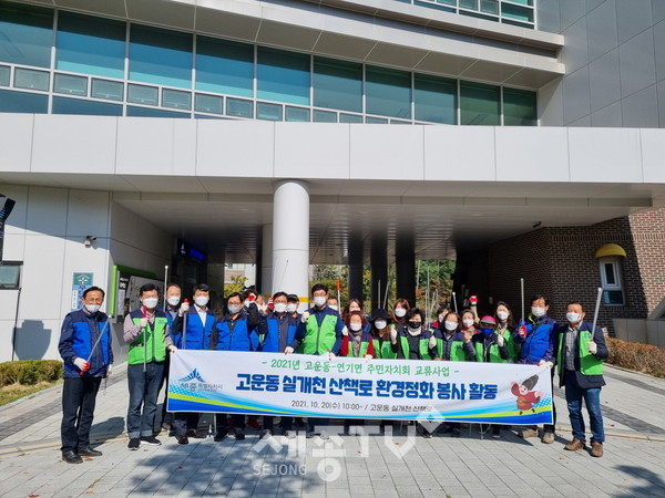 세종특별자치시 연기면·고운동 주민자치회(회장 신동익·김대곤)가 20일 고운동 실개천 일원에서 환경정화활동을 진행했다.