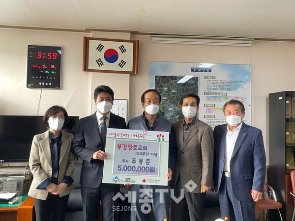 세종특별자치시 부강면에 위치한 부강장로교회(담임목사 조용준)가 창립 100주년을 기념하기 위해 지난 19일 세종시공동모금회를 통해 부강면지역사회보장협의체에 500만 원을 기탁했다.