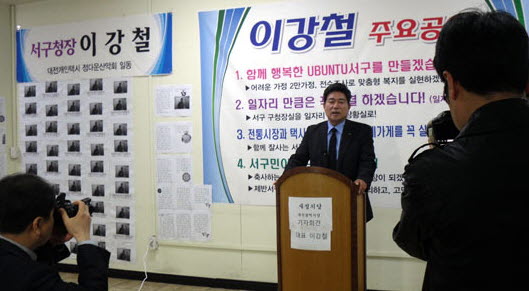 이강철 대전 서구청장 예비후보는 새정치당 대전시당위원장 자격으로 28일 오전 서구 용문동 자신의 선거사무실에서 기자회견을 열고 "새정치당으로 서구청장에 출마한다"고 밝혔다.