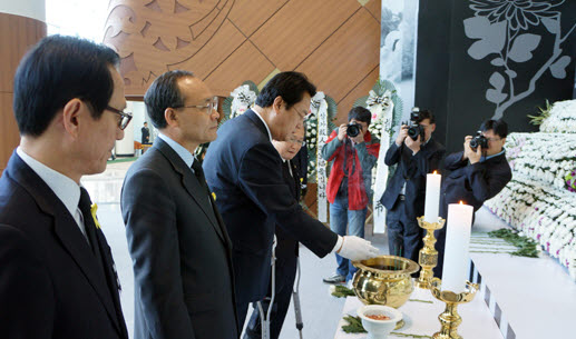 정 후보는 이날 오전 충남 공주시 계룡면 선영을 찾아 참배하고 새로운 출발을 다짐했다. 이어 세월호 희생자 합동분향소가 설치된 내포신도시내 충남도청사를 방문해 성완종 도당위원장 등 전현직 의원들과 함께 합동 조문을 마쳤다.