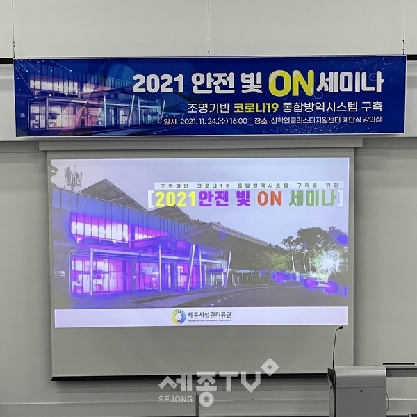 세종특별자치시시설관리공단(이사장 계용준, 이하 공단)은 국토교통과학기술진흥원 주관 ‘21년 국토교통기술사업화지원사업 추진과제 수행 1년차 진생상황을 점검하고, 관련기술 개발 성과에 대한 관계자들의 의견청취를 위하여 ’안전 빛 ON’세미나를 개최했다.