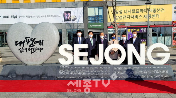 유래비는 가로 10m, 높이 3m 크기의 하트 모양으로 제작됐으며, 상단에는 ‘대평에 살어리랏다’는 문구와 영문으로 ‘세종(SEJONG)’을 나란히 새겼다.