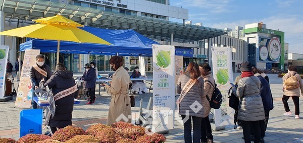 2021년 11월 29일(월) 세종기후·환경네트워크와 대전보호관찰소의 봉사자가 공동 주최하여 조치원역과 조치원시장에서 ‘온맵시로 건강과 지구를 살리자’라는 주제로 ‘온맵시 캠페인’을 진행했다.
