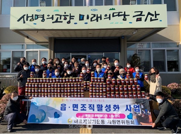 금산군 제원면바르게살기운동협의회(회장 손창수)는 지난 5일 지역 내 소외된 이웃을 위한 고추장 담그기 봉사에 나섰다.
