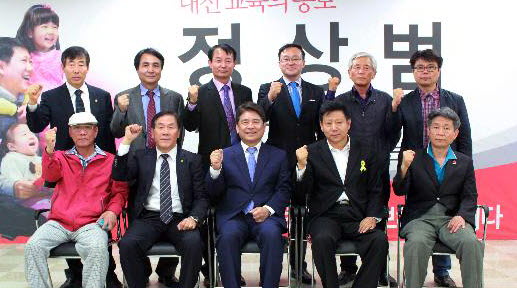 새누리당 대전시장 예비경선에서 탈락했던 육동일 충남대 교수와 그의 지지자들이 정상범 대전교육감 예비후보 지지를 선언했다.