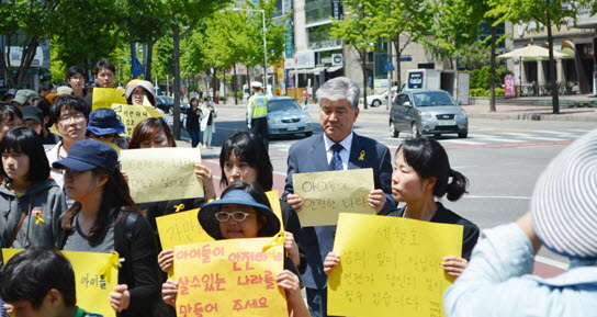 세월호 여객선 침몰사고와 관련해 대전에서도 인터넷 카페를 통해 모인 '카페맘'들이 세월호 추모행진을 벌였다.