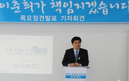 새정치민주연합 이춘희 세종시장 후보는 15일 후보등록을 마치고 오후 2시 자신의 선거사무소에서 일곱번째 목요정책발표회를 개최하고 ‘도농상생의 무지개 프로젝트 : 11개 읍․면․동의 조화로운 상생발전전략’이라는 주제로 각 지역별 정책을 발표했다.