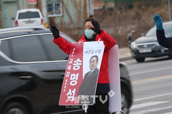 여러 후보가 <현재의 세종시 교육에 만족하십니까>, <세종시 교육 이대로는 안 된다> 등의 구호를 내걸고 있지만 공식적으로 전교조와 같은 직접적인 표현을 사용한 것은 송명석 예비후보가 최초이다. 전교조 출신인 현 최교진 교육감을 겨냥한 발언인지 밝히지는 않았으나, 현재까지 가장 뚜렷하게 자신의 색깔을 밝혔다고 볼 수 있다.